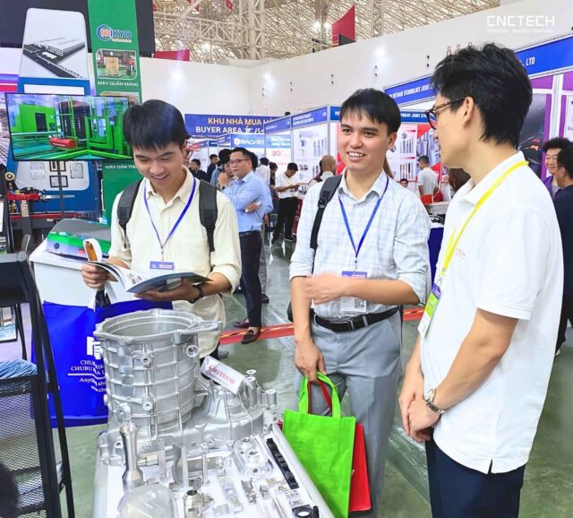 Bước sang ngày thứ hai của triển lãm, các cuộc trò chuyện tại gian hàng trở nên sâu sắc và chi tiết hơn. CNCTech tiếp tục giới thiệu hệ sinh thái sản xuất tích hợp, nhấn mạnh năng lực gia công CNC chính xác, chế tạo khuôn mẫu và ép nhựa kỹ thuật, sản xuất kim loại tấm, chế tạo khung máy, máy móc tự động hóa và các công nghệ xử lý bề mặt. Mỗi dịch vụ đều phản ánh sự đầu tư nghiêm túc vào công nghệ, quy trình và chất lượng, đồng thời thể hiện khả năng đáp ứng linh hoạt cho nhu cầu đa dạng của đối tác trong và ngoài nước.