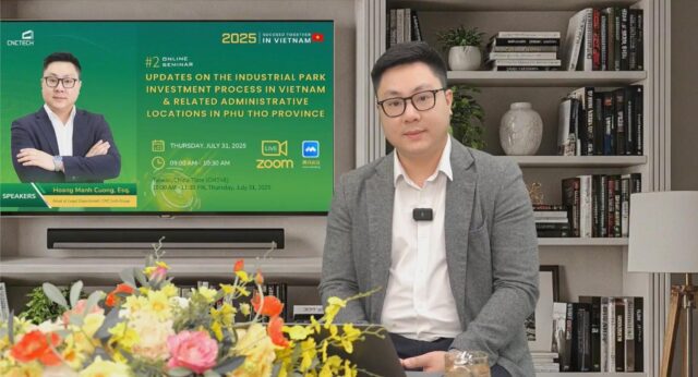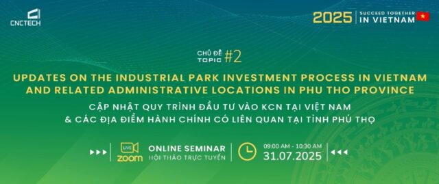 Nhằm hỗ trợ các doanh nghiệp FDI nắm bắt kịp thời những thông tin cốt lõi về quy trình đầu tư, chính sách pháp lý cũng như định hướng chiến lược khi tham gia vào thị trường Việt Nam, CNCTech Industrial đã tổ chức hội thảo trực tuyến với chủ đề “Cập nhật quy trình đầu tư vào khu công nghiệp tại Việt Nam và các địa điểm hành chính có liên quan tại tỉnh Phú Thọ”. Đây là sự kiện nằm trong chuỗi chương trình “Succeed Together in Vietnam” sáng kiến xúc tiến đầu tư quốc tế do CNCTech khởi xướng, nhằm tạo cầu nối giữa chính quyền địa phương và cộng đồng doanh nghiệp toàn cầu.